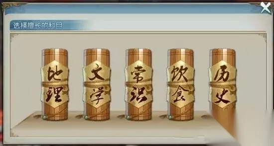 文曲复试 进入复试之后需要先选择一门擅长的科目进行考试 提供五种类型题目选择“地理,文学,常识,饮食,历史” 复试计算答题时间! 根据复试的情况判断进入终试的仙友~