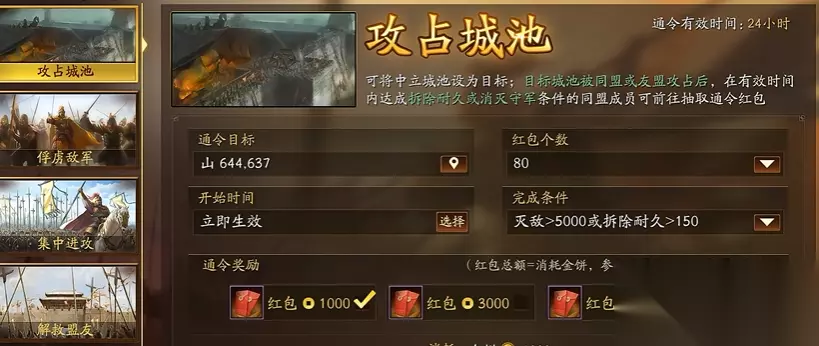 除了土地管理外,尚书令还需参与同盟的战略决策。在立国剧本中,尚书令的职责进一步扩展,需协助君主规划国土保护范围,制定郡县划分方案。立国后,国土内的土地将受到系统保护,敌方需额外镇压才能俘虏玩家,因此尚书令的布局能力直接影响同盟的防御强度。尚书令还需与外交官、大将军等职位配合,确保内政与军事行动的协同性。