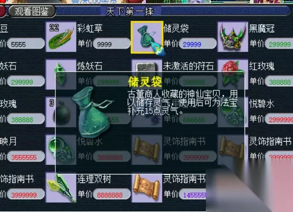 储灵袋使用方法: 1、使用储灵袋,储灵袋可以在古董商人那买到,但是太贵,需要10万,此物也可以从副本里产出,可以找其他不需要的玩家交易购得