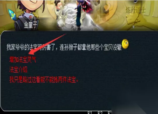 3、和金童子对话选择增加法宝灵气,不过需要消耗大量的金钱,换算下来,比用储灵袋还要贵很多。