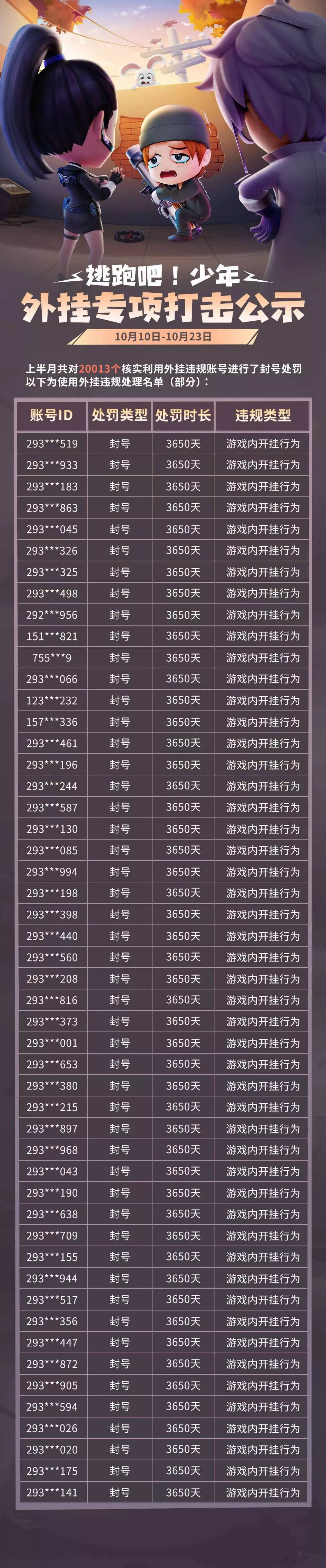 【外挂处罚名单】