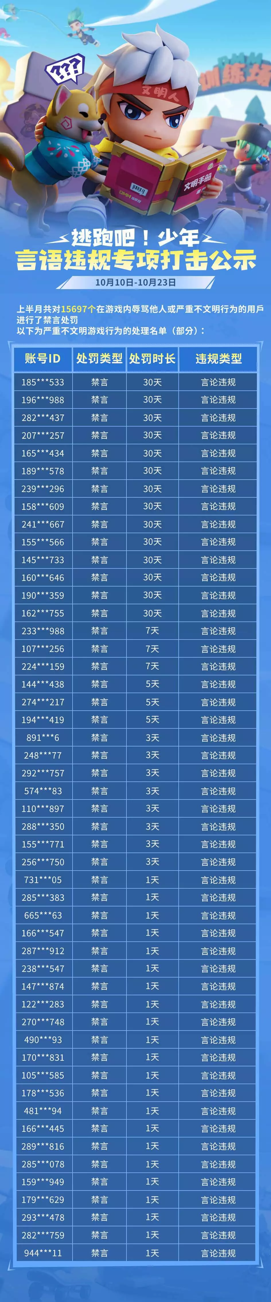 【言语违规处罚名单】