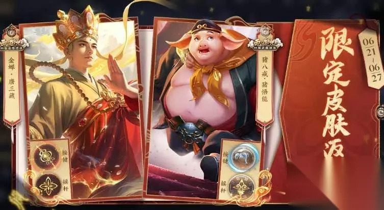 2023王者荣耀端午节限免皮肤一览 返场规则: 手Q鹅毛市集及微信游市集返场时间:6月19日10:00-6月27日23:59 游戏内返场时间:6月21日0:00-6月27日23:59 返场皮肤: 金蝉-唐三藏 价格:888点券 解锁皮肤可获得专属个性动作:紧箍咒 猪八戒-猪悟能: 价格:888点券 解锁皮肤可获得专属个性动作:背媳妇 本次返场后将不再以直售形式返场 个性按键上架 猪悟能 个性按键 猪八戒 猪悟能 皮肤专属个性按键,前往定制-个性按键使用。