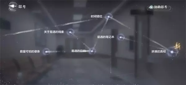 2、前往房间二,收集线索,并和易遇对话,即可离开。再到房间三,收集线索后进行【思考】,得出结论【拼凑的真相】。