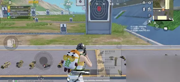 3、接下来我们寻找一个靶子,在静止或者跑动状态下不开镜来快速调节准心到靶子上面;