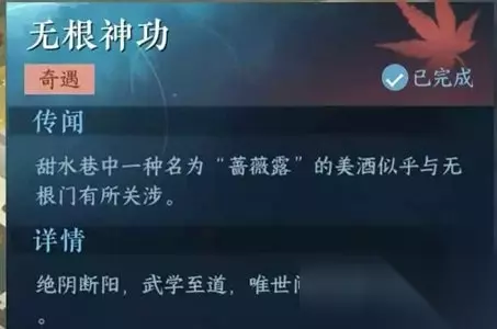 逆水寒手游无根神功奇遇怎么做,小编为大家带来逆水寒手游无根神功奇遇攻略,包含了这个奇遇的触发方法和任务流程哦,不要错过啦。 逆水寒手游无根神功任务攻略 任务类型:奇遇任务 奇遇等级:小吉 任务位置:【杭州】坐标(957,1342) 任务npc:【邓宝扇】 前置任务:完成前置奇遇【锦伞红衣】 具体流程: