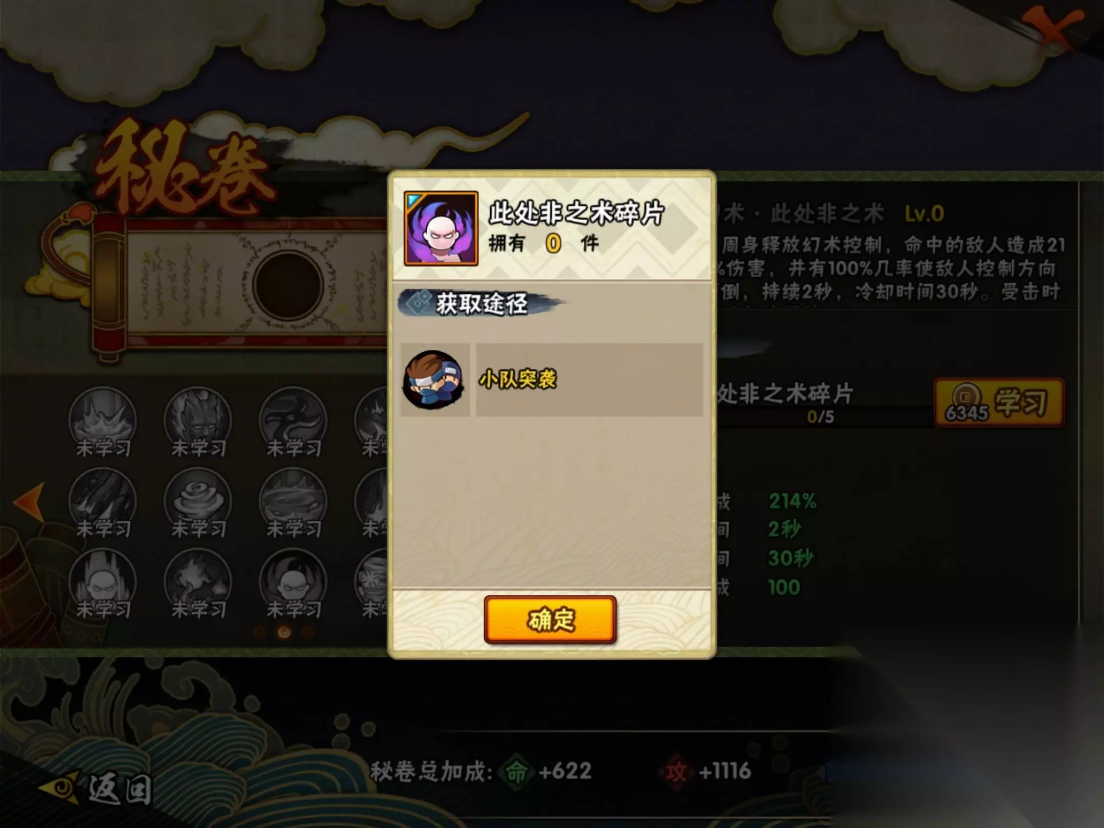 介绍火影忍者手游秽土鼬专属秘卷幻术·此处非之术的获得方式,攒齐5个该秘卷碎片即可学习解锁,秽土鼬专属秘卷碎片可通过参与小队突袭获取。