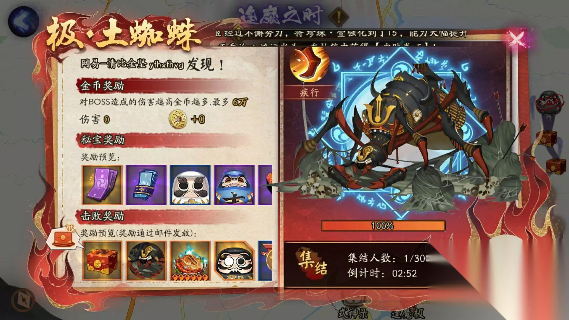 本次土蜘蛛先说一下大体的体感,第一次发现原来阴阳师有这么多玩家,挤车挤了差不多十分钟才进副本,而且打了普通土蜘蛛后就不能碰极土蜘蛛了。极土蜘蛛有异变词条,词条会定期更换,不同的词条下的攻略阵容也不同。
