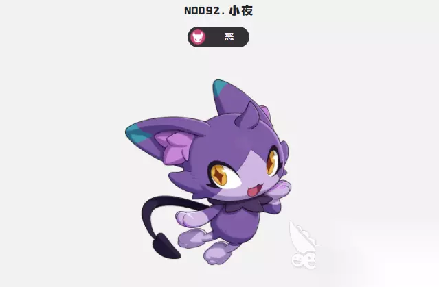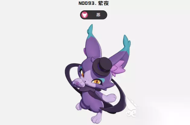 子夜是游戏里的一个恶属性精灵,这个精灵就像一只紫色的小猫,在这个小猫头上还会有一顶黑色的小礼帽,这个精灵是根据小夜进化过来的,原本这个精灵也是一个小猫角色,但外观造型会更加可爱,颈部有一圈花纹,尾巴是黑色的箭头,等级达到了26级之后,就可以进化成紫夜,这个精灵角色不管是果实还是精灵蛋都是暗紫色,在游戏里角色的移动速度非常快,整体的物理攻击也很优秀,但魔法防御相对来说会比较低一些,作为一个身姿灵活的角色,玩家可以利用他的速度和攻击在游戏里给对方带来伤害,角色有一个额外的特性,就是在首次受到致命伤害的时候可以免疫。