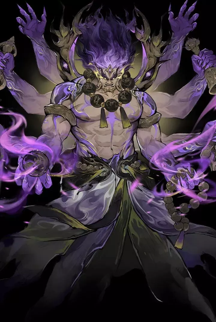 您看这张图里,梵天褪去慈悲伪装,化身邪恶之形,周身萦绕的寂灭气息藏都藏不住 ——