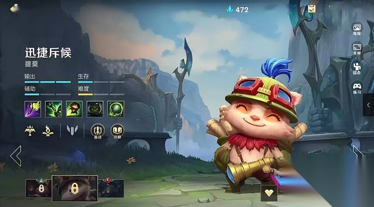 在游戏玩法方面,提莫擅长对付那些没有突进能力的英雄,如诺手这类没有突进和控制技能的英雄。只要与他们进行消耗战,他们会感到非常不适。在端游中,提莫的1A或A1A都是用来消耗敌人的连招。手游中也是如此,但有一些新的改进,例如被动技能和三技能的调整。伪装加攻速已经成为了主动技能,这在实战中非常实用。在偷袭时,可以利用伪装和攻速与敌人对拼,或者原地进行消耗战。接着,利用2技能将敌人拉离三技能的侦测范围,然后利用伪装撤退。