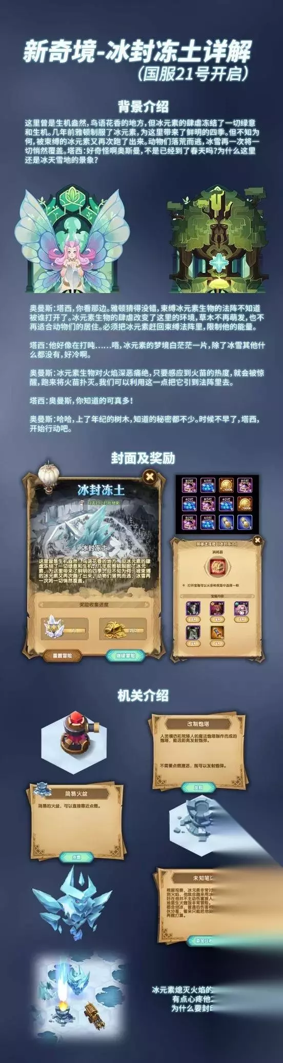 建议:前期女妖卡本体上红的可以换女妖,小鹿也可以考虑,否则建议选择种族十连抽。 打法攻略 机关介绍: ①改制炮塔:人类模仿拓荒矮人的魔法炮塔制作而成的炮塔,能远距离发射炮弹。 不需要点燃激活,就可以发射炮弹。