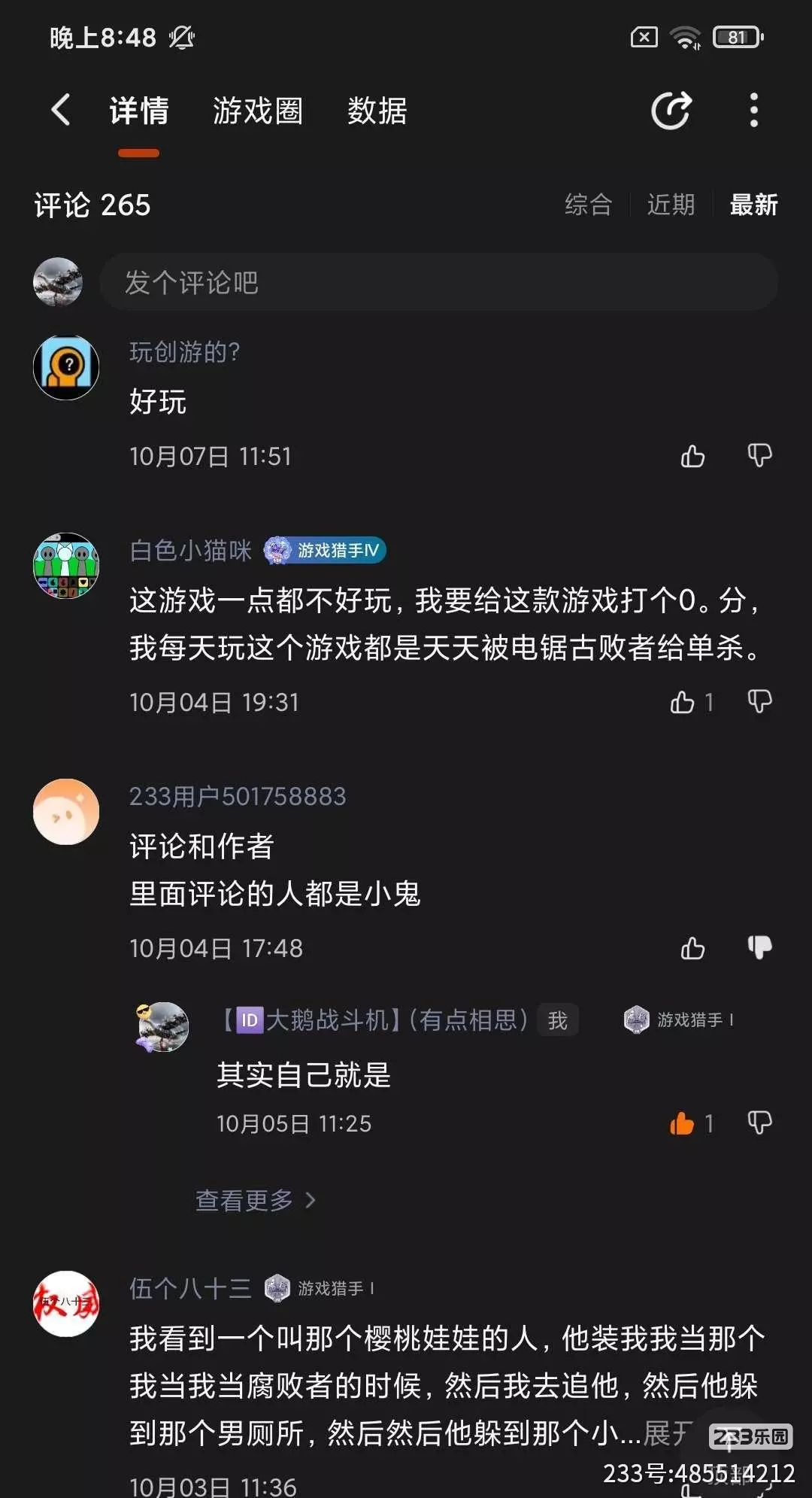这是我在这个游戏看到的评价