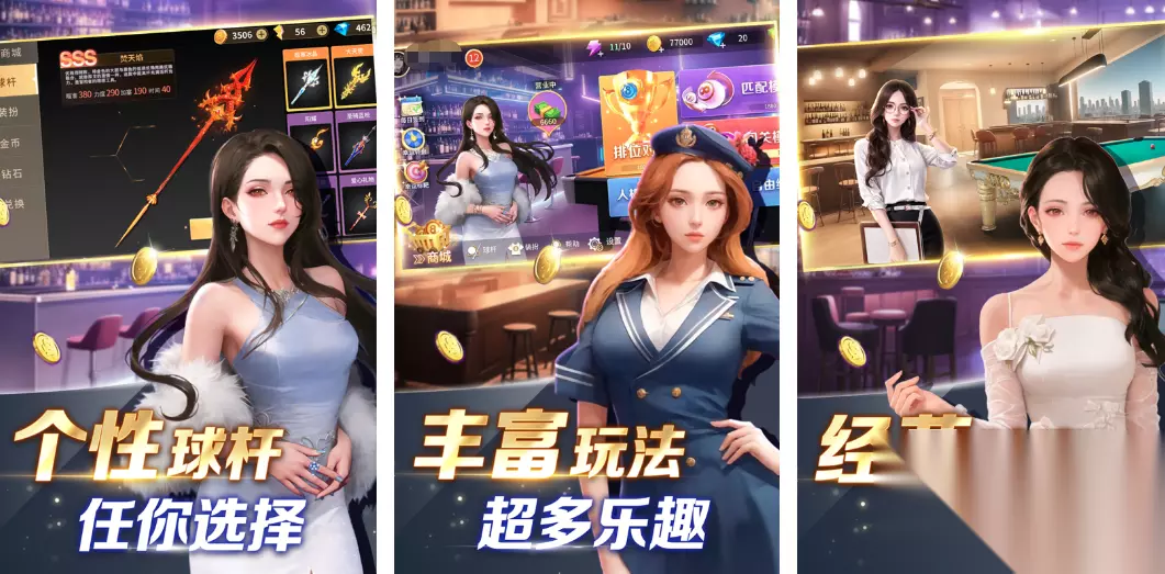 这是一款实时对战类的台球游戏,有着非常真实的物理引擎,玩家们在这款游戏中可以进行实时匹配,和真人进行一场酣畅淋漓的对决。同时游戏也有着积分模式,会根据玩家们的胜场来决定段位,这样也方便玩家们在匹配时和实力相当的对手进行作战。同时游戏内还有着各种酷炫的球杆、球台与背景等待着玩家们去解锁,喜欢打台球的玩家们一定不要错过。 高速下载 普通下载 优先233乐园APP下载 3、《万宁台球》