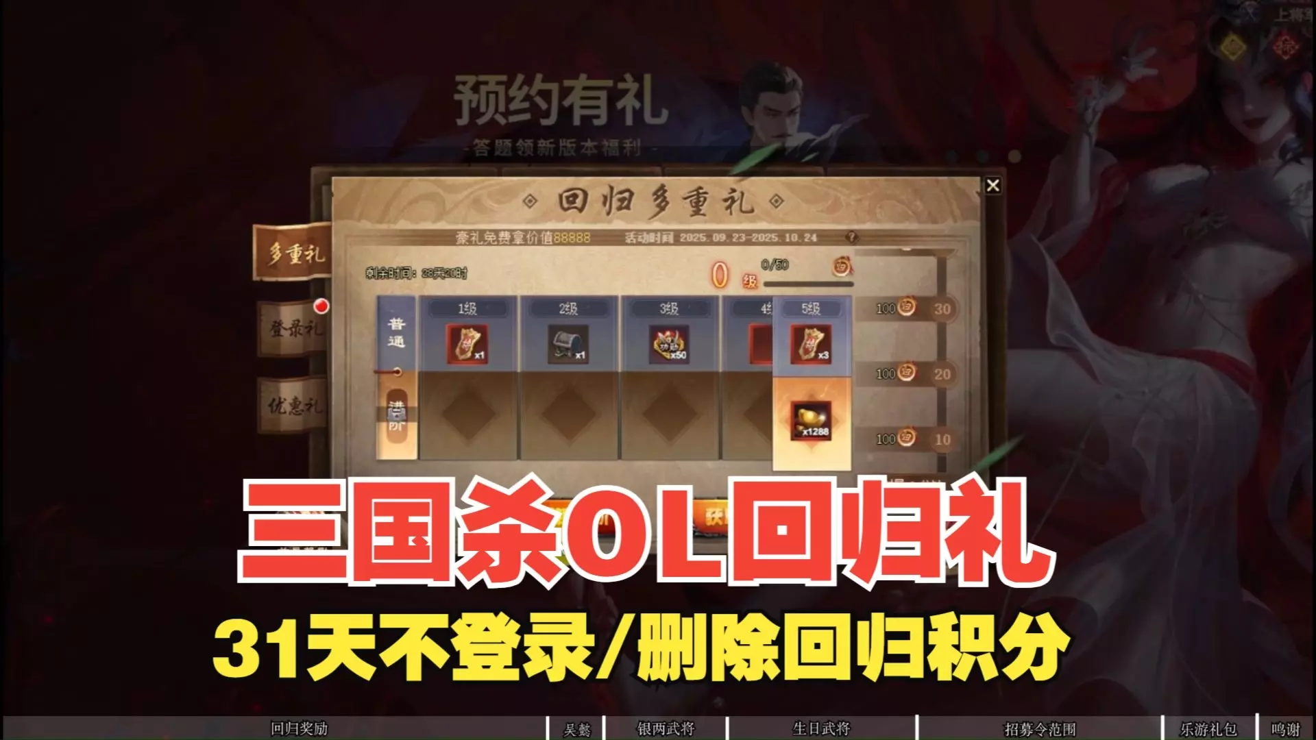 回归礼包和乐游奖励提醒 1、公会商店将4宝箱可以白票吴懿; 2、回归自选武将累计数删除*2:界吕布、吴懿 - 3、三国杀官网-关于我们-个人中心-乐游礼包 乐游…