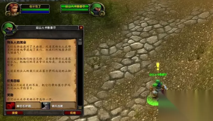 魔兽世界狗头人的耳朵任务怎么做 完成方法: 1、进入游戏后在洛克莫丹的塞尔萨玛与巡山人卡德雷尔对话接受狗头人的耳朵任务