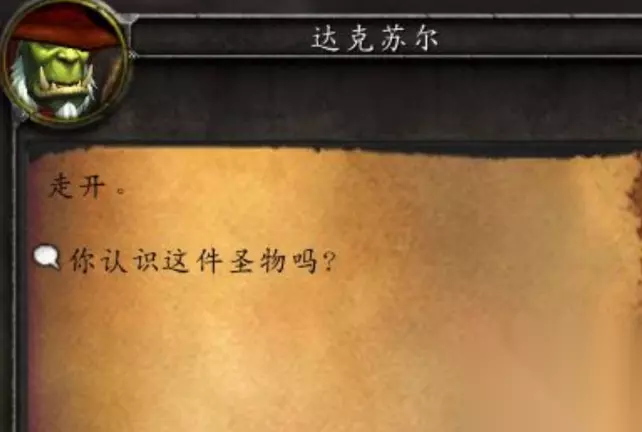 4、打开后获得个圣物,这东西要拿回去给老兽人看。还是点对话,多点几次老兽人,直到啥也不说为止。
