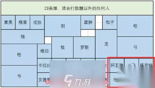 在游戏中,通常前排的宽度是5格,而在格罗特和小飞同时享受阿瓦隆号角的效果下,平排放一行,无论如何都无法将主力输出和风之矢同时覆盖在对方前排身上。 这个阵容的特点在于快速爆发士气,快速消灭单一部队,因为攻击越分散,士气积累越慢。将英雄排成一排可以达到最高的士气爆发上限,同时也会使得风之矢对大部分队伍的金弓加成更为显著。 阵容二 曾经被认为是人族的弱点,剑弓组合如今在新的英雄科技下重新崭露头角。虽然在以前的版本中,大多数人都使用金剑,但最近,金戟代替了金剑的位置。这个变化在一次决斗场中首次出现,自那以后,许多玩家开始使用金戟。
