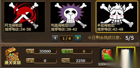 4)海贼团活动奖励: 参与每日活动“海贼团的逆袭”将有几率遇到的宠物。 最具代表性的就是宠物美羊羊,昆贝等。
