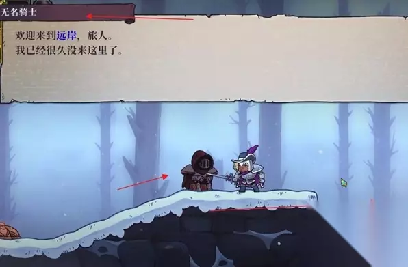 2、在地图中首先要找到无名骑士,然后向右边走。