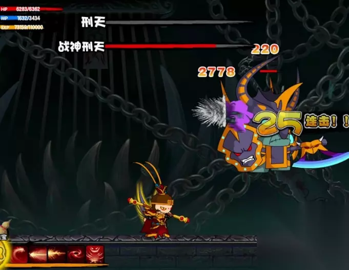 打法技巧: 1、见到boss刑天,我们立刻溜到最右方,选择攻击刑天。