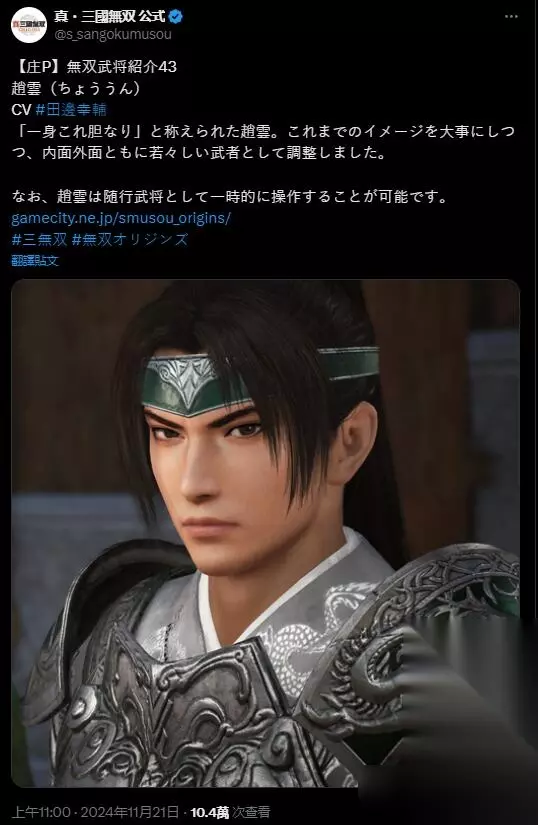 今天,《真三国无双:起源》官方公布了武将“赵云”的人物介绍,他被刘备称作“一身是胆”,本作中承袭既往形象,以更年轻的面貌出现,赵云可以作为随军将领被临时操控。