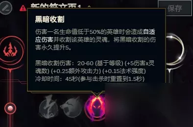 2、黑暗收割,前期伤害很低,一点点伤害打在人身上基本没什么感觉,要到20多层伤害才和电刑差不多,一般到这个时候,游戏也差不多结束了,所以说很多情况下电刑是优选。但黑暗收割强在滚雪球能力以及击杀或助攻后刷新冷却,是上限极高的符文,越打到后期额外伤害越明显,适合低端局使用。