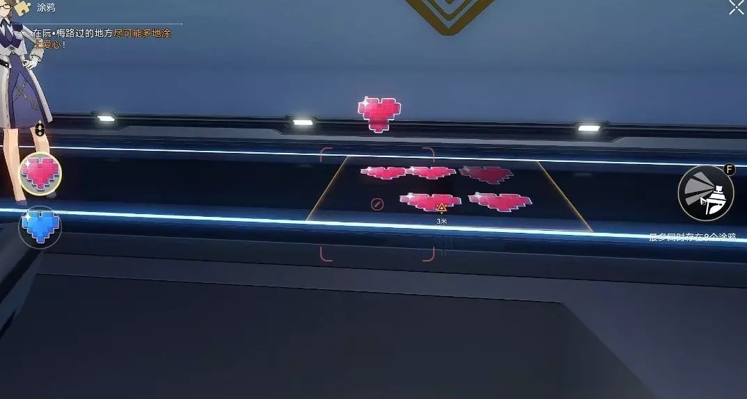 《崩坏星穹铁道》执行神秘的召唤仪式任务攻略 1、首先需要在阮·梅经过的路(发光区域)喷上涂鸦大量爱心,最多存在八个爱心涂鸦。