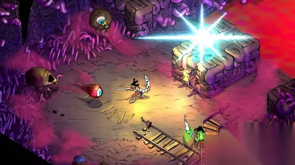 游戏玩法类似TGA获奖作品《黑帝斯》,采用相似的战斗与美术风格。玩家通过等距视角精准把握攻击时机,在魔瘟异变的怪物群中穿梭、连击,最终释放强力终结技。主角无法避免魔瘟感染,这种感染会动态改变世界样貌与战斗节奏,敌人强度也会随精神状态变化。