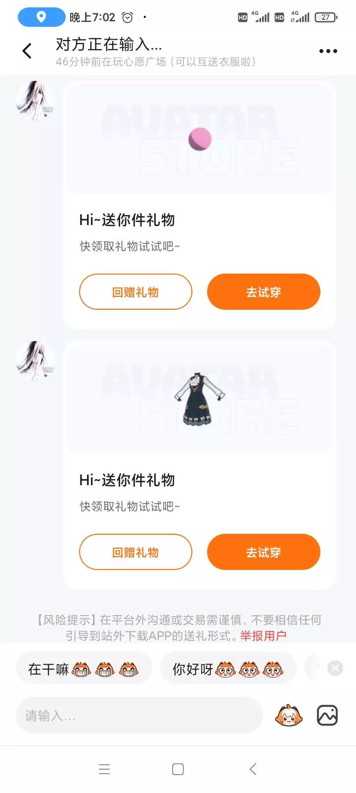 非常好玩。 还有可能有人送衣服