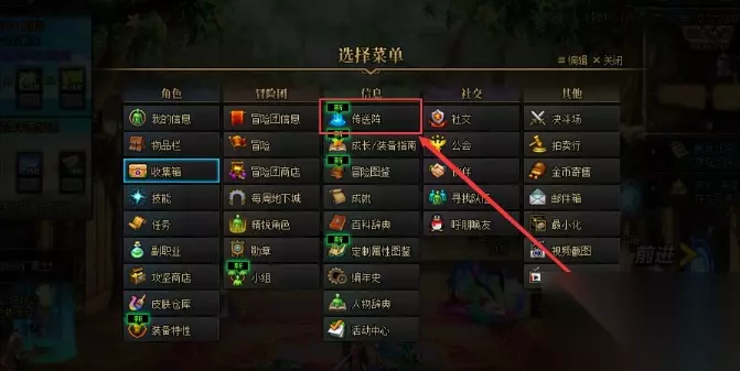 2、点击【传送阵】,选择【副职业】。