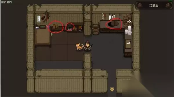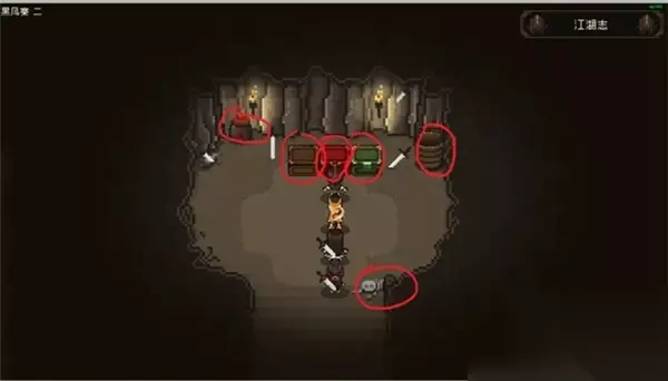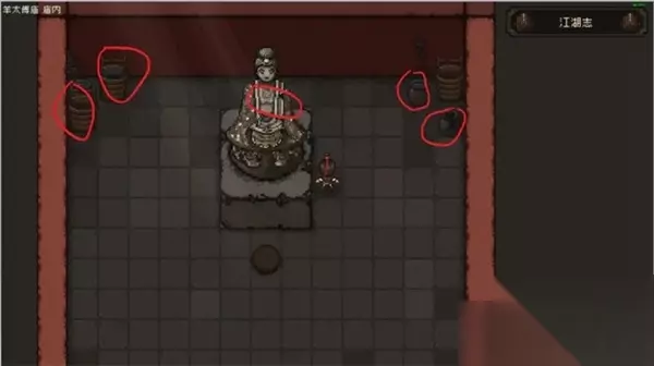 加入大黄狗 出庙后,左边有一只大黄狗。这只狗需要喂它羊肉馒头才能加入队伍,不过刚开始时我们身上并没有羊肉馒头,稍后会去城里购买一些。 一旦加入大黄狗,它会成为一个强力的队友,帮助我们在接下来的冒险中。 探索襄阳城 接下来前往襄阳城,进入城后,我们遇到一位身着白色盔甲的士兵。对话后选择装傻,道德-1,悟性+1,其他选项都会导致道德-1。 城中的左手边有一条小胡同,胡同中有一个黑桶,调查后可以获得一把柴刀。 包打听与女NPC对话 在包打听的右下方,有一位女性NPC与我们对话时,选择明、井、湖、伞的选项,可以获得5个羊肉馒头。老板娘右边的坛子里也能捡到一些物品。 小树林与乞丐 从房子下方钻到小树林,这里的小李子会要求你给他桃木剑。你可以选择忽视他,继续前行。在小树林中的宝藏下会有一些提示,帮助你找到更丰富的道具。 在广场中,有两个乞丐,可以用来进行一些练级。即使打不过他们,也不会导致游戏失败。打赢之后,还可以获得英雄大会的请帖。乞丐右上方的桶里也能捡到一些物品。 触发丐帮剧情 乞丐战斗后,丐帮的长老吴金发会出现在场景中,此时最好先不要和他对话,等到队友多一些时再来挑战他。 此外,图中的红圈位置有一个饰品,可以装备,前提是奇门属性达到30点。这个饰品似乎就是小李子提到的宝藏。 与丐帮鲁长根对话时,选择直言会让道德+1。接着,选择老伯对联的正确答案(1231)可以获得行酒令。