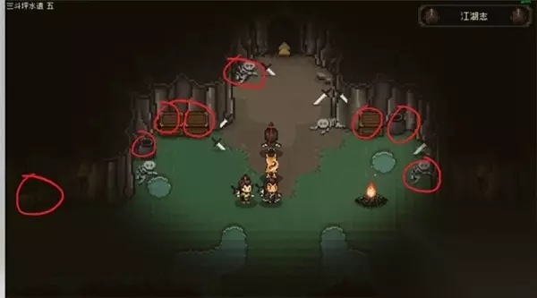 进入金兵军营 继续向大地图上方前进,最终到达金兵军营。进入后,你将面临三种对话选项,选择图利帮助金兵会得到一件不错的装备。 如果选择冷漠,则无任何奖励;如果选择正义,道德+1,并获得“呼吸吐纳之法”。当道德大于等于5时,可以邀请金兵队员入队。此时,我选择了正义,这样可以获得两个非常强力的队友。 返回襄阳城 - 击败鸡 回到襄阳城,挑战强大的鸡。这个鸡非常厉害,一定要等到有了更强的队友后再来挑战它。挑战成功后,可以获得“怒晴鸡血”,使用后可以永久增加10点攻击力。 黑风寨与三斗坪水道 离开襄阳城,从左侧出口前往寺庙下方的洞穴,进入黑风寨。这里将会有一系列的战斗。打完山贼后,记得搜刮房间内的物品。