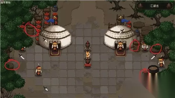 金军营地与黑风寨再探 最终,我决定回到金军营地,进入后选择了机智的对话。利用之前在黑风寨获得的令牌,成功解锁了练级和搜索道具的机会。右侧的NPC会让你喝汤,喝两次可以提高气血上限。注意不要喝第三次。 剑冢武器的再次获得 此时,可以回到黑风寨里的剑冢,拔出需要15臂力的武器。然后,乘船前往镇江渡口,探索并获得更多道具。