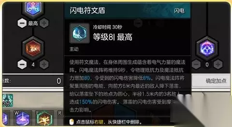 闪电符文盾必须加满!这个技能在雷属性的影响下增加了属性伤害,这就意味着在近身攻击时不仅可以做到防御攻击,而且可以给对方造成一定的伤害,持续时间9秒且冷却也不算太长,最重要的一点就是不用太多释放时间就能带来可观伤害,所以属于只要冷却没了就使用的技能。