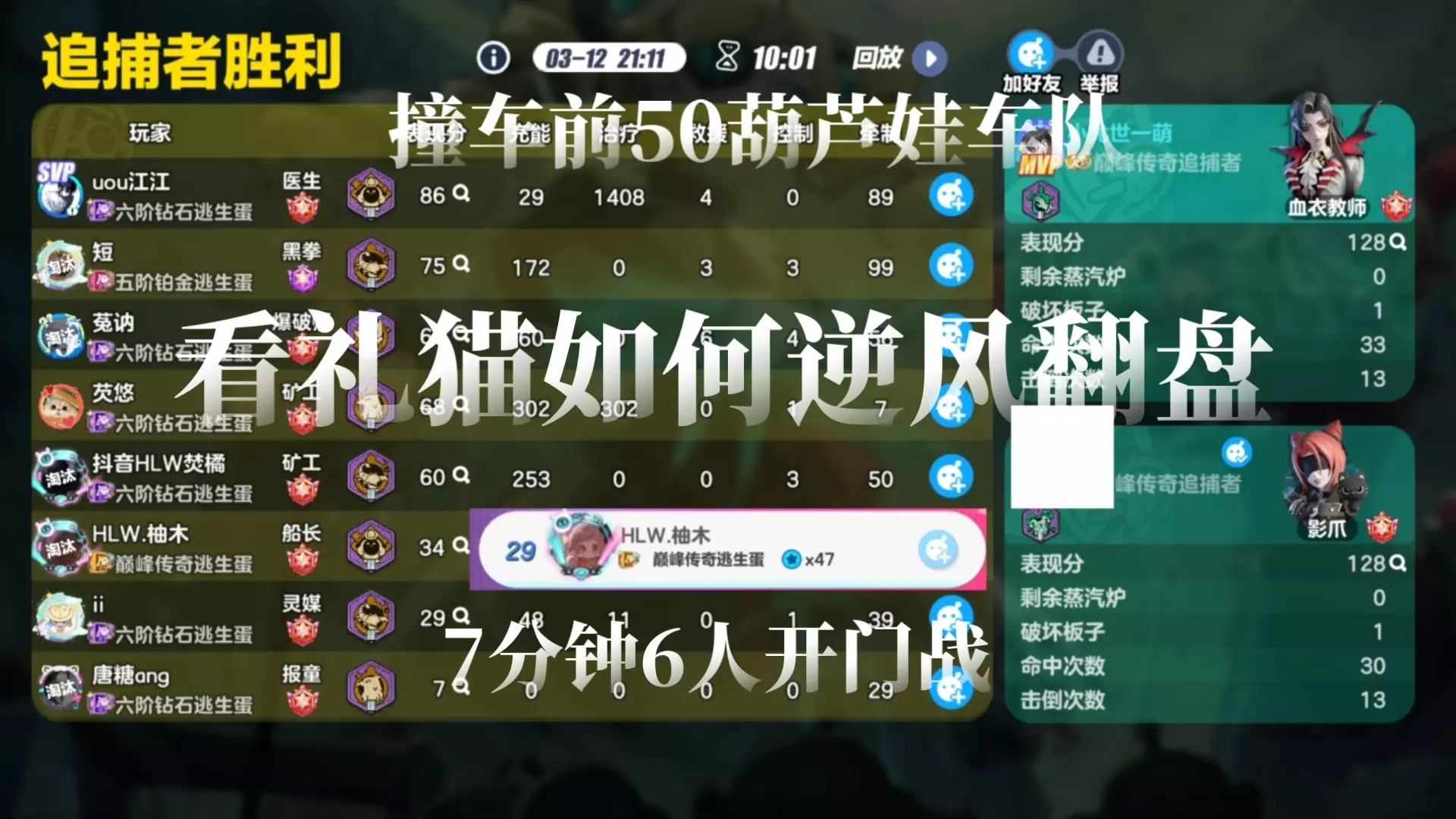 赛季初打排位打得想死,跟双排科研打这个阵容一中午分上爽了,体感是四五阶对局好上分,这个阵容阴就阴在只要修机不修错,哪怕一溜不够也能保平。 开局追入殓,入殓一溜带…