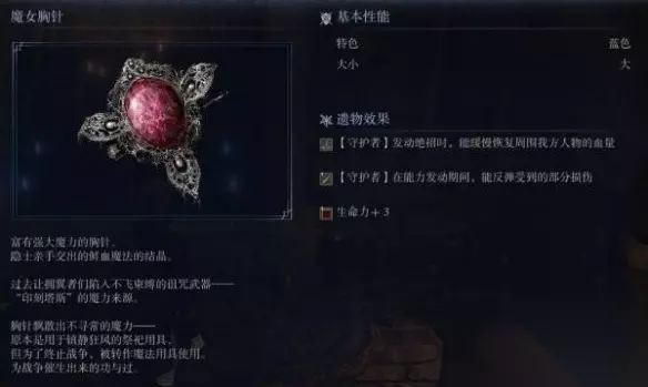 遗物获取: 击败黑夜化形者解锁守护者的第九章追忆任务,去圆桌厅堂悬崖边找隐士对话,选择“原谅罪过”获得魔女胸针,选择“制裁罪过”则获得碎裂的魔女胸针。