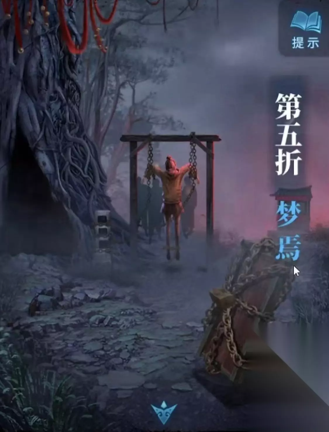 第四幕:牵丝。 这一幕的故事讲述的就是破解这个臧玲村纸嫁衣的故事,也是讲述了荀和陶前世的故事。这里的解谜通过依次将获得的种子种下去,顺着长大的树爬上去。完成逻辑判断的故事之后陶和钟收到鬼的影响开始影响了陶的心态。通过铜钱获得蝴蝶提示来摆列脸谱。根据顺序采摘果子,获得线索。这一幕中会出现整个故事中最大的boss屠老四的后人屠浮生。通过幻术让陶失去抵抗力完成他纸嫁娘的使命。