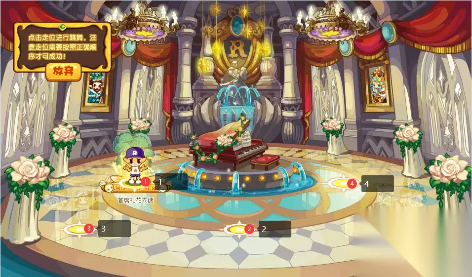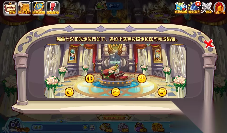 开始跳舞前需要取消飞行状态,然后根据舞蹈走位依次点击场景中的舞蹈点位: