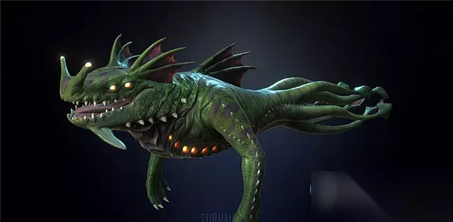 幽灵利维坦在游戏里也以未成年和成年两种状态出现,跟成年幽灵利维坦相比,幼年利维坦会显得更小。幽灵利维坦在失落之河的生命之树里出生,那也是你最先能见到它的地方。随后它们会往海底深处游动,在它游动的尽头,你会看到那只最大的幽灵利维坦。通常水流的声音会提示你这只深海巨兽就在你附近。当然,听到声音的时候想都不用想,拔腿就跑,毕竟它可以轻而易举的毁了你的潜艇。任何的攻击都会对你造成85%的伤害。令人胆颤的外形,不为人知的出身,天然的巨角和血盆大口。这就是幽灵利维坦,深海迷航里第三大的怪兽。 NO.2 海龙利维坦