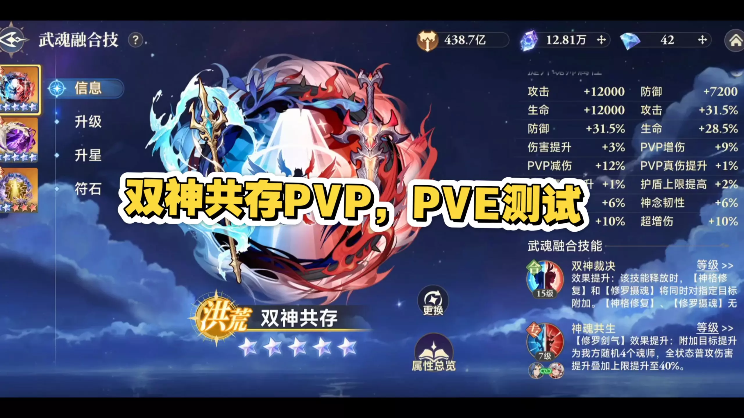 这是RPG《斗罗大陆逆转时空》的新内容爆料,带来新武魂融合技“双神共存”,该融合技有全伤增幅效果,还能提升魂师属性,同时介绍了神魂共生、双神裁决等技能,神赐商店也有不少可获取的相关道具。