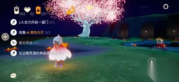 光遇4.16任务完成攻略大全介绍 1、2人合力开启一道门 2、收集橙色光芒 3、面对冥龙 4、在边陲荒漠的神庙里冥想 4月16日季节蜡烛位置大全: