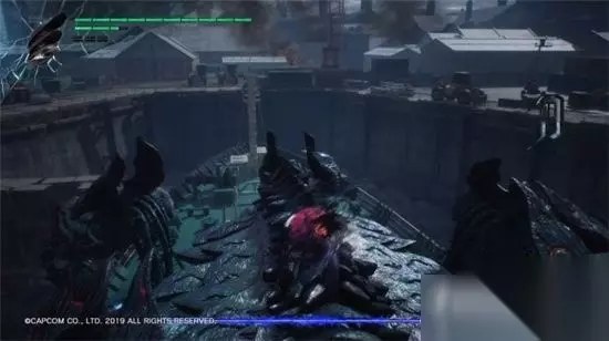 打破一个魔血树块后跳下管道区,前进会发生战斗。管道支路上有一个金魔魂石,回到地面后有电话亭,补给后将对战Boss革律翁骑士。 革律翁骑士前期会多用冲刺攻击,攻击点一般都在我们的左边。他手中蓄力时就将放射三连雷光弹攻击,也比较容易躲避。受到一定伤害后,骑士会使用时间魔法,在其影响范围内行动速度会大减,非常危险。本战的关键点是要保护好使魔,如果被其周身雷电魔法击伤使魔,就要伺机靠近恢复。 任务6 本关无收集内容,上来就是Boss战。此战的基本思路是先击破怪物腿部的弱点,带其变蓝后用手臂抓取飞上其背,猛攻头附近的红色弱点。当其身背出现液体涌动时,即是要放出针刺攻击的预兆,可以二段跳原地躲避,也可以考虑跳下其身。如此反复,总体来说没有难度。