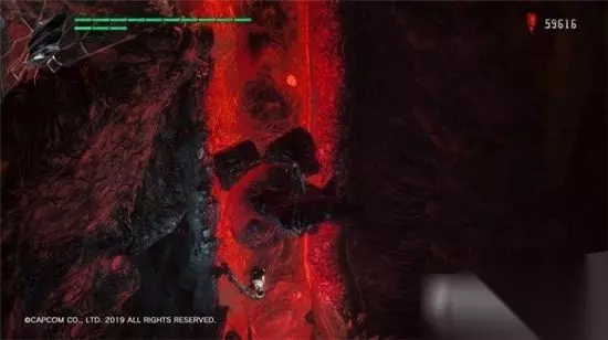 走不远能发现第二个岩浆升降平台,先到最高处取得金魔魂石,然后借助手臂冲刺跳到右侧的一个平台上,能看见上下移动的骸骨支架。通过两个骸骨支架移动到一个高点,下去发现隐藏空间,除了红魔魂石外,中间位置可触发秘密任务5:不接触地面抵达目标点,通过后得到蓝魔魂石碎片。