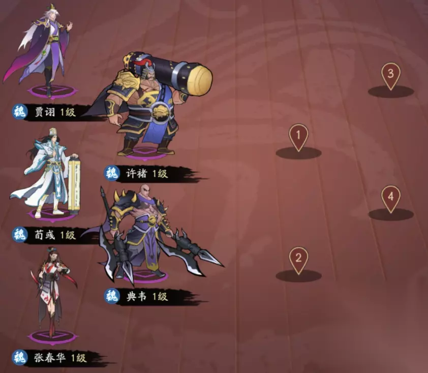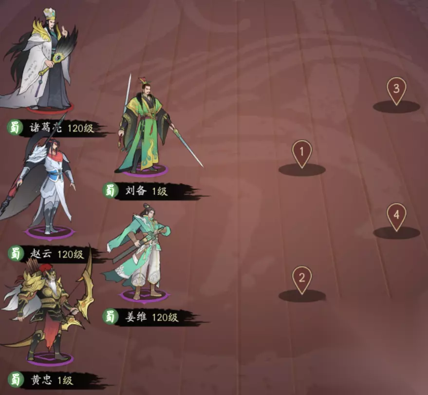 优点:大部分武将都有回血的效果(典韦和贾诩有吸血,荀彧能加血),许褚除了拥有优秀的保人效果外,和张春华一样有护盾技能。其次贾诩和张春华的技能都针对智力型武将,而游戏中智力型武将不是辅助就是输出,集火攻击很容易提前造成对面的减员。在输出端这套阵容中规中矩,aoe伤害主要靠典韦和贾诩的大招。 缺点:许褚在没有四技能之前身板不硬,开出大招更是雪上加霜(制作组不考虑改下大招效果么),很容易被对面集火秒掉。另外对面如果没有智力型武将,这套阵容就难以发挥技能优势。 【蜀国】前排:刘备+姜维,后排:诸葛亮+赵云+黄忠。前排可用关羽、张飞、马超和庞统替换,后排可用法正替换。