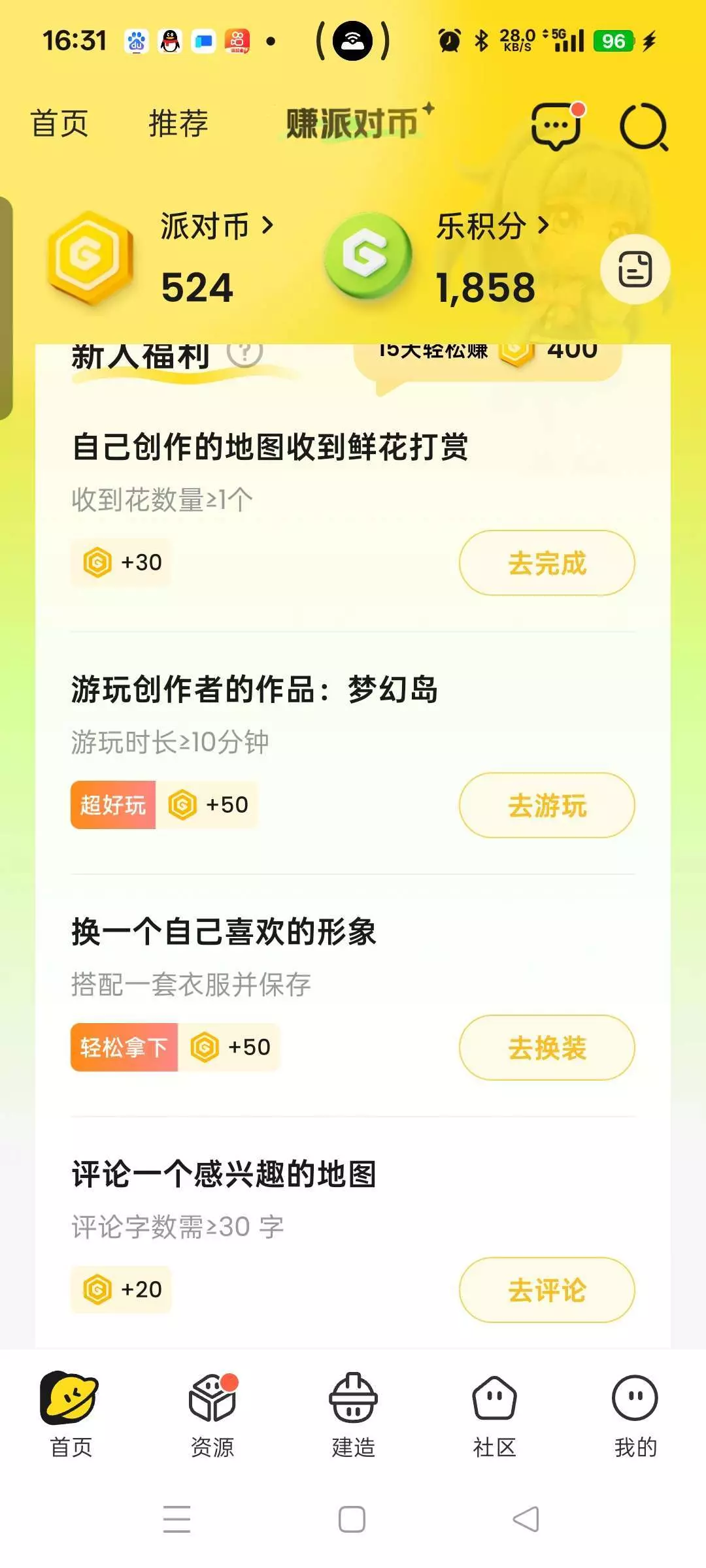 这种的,然后玩创作者的作品,玩10分钟就会有50派对币,在里面也可以看到233的好友以及消息,以下是我随便拍的一张↓