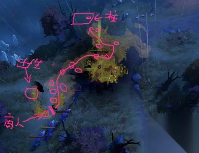 (原谅我的画技...大概看得明白就行...) 放大地图的放大概是鼠标点小地图,然后按TAB键吧 (键盘~键下面那个) 因为第一关要效率的清理16头熊,所以就没时间去开那些箱子或者是刷小怪刷钱了! (这里要注意一下,只做三星和求通关是不同的,这里说的是只做三星,求通关的版本我以后会再发帖子说明!) 看上面的图,从商人那一过桥,就立马按照左边那三个点清理熊,顺路清理第四个点, 然后直接按照画着的曲线前进,那条小通道是比较狭窄的,但是通道图中基本有2个-3点个的熊,一路打过去 接着到中大概影魔上面一点的位置,那也有几个点,清理了,接着跟线走,应该是一个上高坡的地方, 这时候看一下清理了大概多少头熊,如果够12头了,那直接上了高坡就往左边走,因为左边两个点大概会有4头熊。 直接杀光,速度往左边的桥冲过去,然后跑到柱子附近,就能完成了,一般时间都是2分40秒左右就能完成吧! 如果是第一次不熟悉路,可以稍微试探性的开几盘探探路,熟悉地图! 至于打法嘛,就是死骑先套套子上去勾引怪到一堆,然后火女一个D,影魔两炮基本就完事了。 巫医全程开加血跟着队友帮忙A几下即可 (提醒一下,小精华可以放了第一个技能后就开始吃了,小怪不打断的!) 至于怪物的话,稍微注意一下大熊怪会有一个后仰的抬手,然后拍地板,这个伤害比较疼,但是抬手比较慢,稍微注意一下走位,还是挺简单的!切忌一点就是要一起走,一起清理怪,尽量别死,死的话就秒退重新再来吧! 过了记录点的柱子后,就到第二关了,对于操作不熟悉的可以稍微照样探索一下,熟悉一下流程。 如果是只想做完第一关三星的,到第二关这里就可以回头找地方給野怪打死,然后正常结束比赛后领取箱子了! (165级是一次2个箱子)注意,就算是完成了,如果是秒退游戏的话,依然是不給箱子的! 【第二关】十字要塞 【三星任务要求】 1:在5分钟内击败卢修兕(si).长牙 2:我方队伍不能死 这里就牵涉到【第一关】你和你队友上一盘完成三星了吗, 如果完成了,那么第一关的时间要素和死亡要素就不存在障碍了 因为第二关要尽快的击杀狼人BOSS需求装备和配合,然而能刷钱的地方就在第一关的怪物身上。 首先说下推荐阵容 【巫医,影魔,火女,死骑或者潮汐】 通过第一关的时候,大概等级都会到达4级快5级,然后在刷狼人BOSS前会有几波小怪需要清理完 这些怪清理完,基本都到达6级多点,这里暂且打住。然后看如何刷多点钱。 在第一关之前是能出点金手来刷钱的,现在不能了,所以只能尽可能的拿更多钱。 第一关在【图1】这个大概的位置,是出小狼最多的地方,开局就右下角一路清理到图1影魔的位置。 (进行到图中之前和之后都不要打任何箱子和开任何宝箱) 然后开始刷小狼人,注意别去打大熊怪,因为大熊怪打完16只就不再出钱了(金钱限定条件1)。 然后就是团队里任何一个人到达1520-1580块的金钱,刷小狼人也不会再出钱了(金钱限定条件2)。 因为没有时间影响的关系,我们在图1影魔那刷小狼打到金线上限1520-1580块。 然后再去清理第一关全地图的宝箱和熊怪,这样能到达1600-1700,大概会多100-200块的经济 (完成第一关任务后也会有经验和钱) 地上掉的树枝有就拿着,如果有小挂件这样的直接替换掉,多的可以塞备用小格子里卖掉! (这图里,不管是掉的,或者是购买的装备,全部都是可以互相交换使用或者卖掉的!) (第二关别急着去买装备,去附近开下箱子,然后再买好装备,再一起接NPC的任务,就绪后开始) (主要也是看脸开箱子) (注意,这是比较极限的金钱,如果技术好,或者走位风骚,不在乎那点钱装备的话,可以直接省略) (然后其实我还想到一个BUG刷钱的形式,但是现在还没测试,稍后测试如果成功的话,可以形成无限刷钱流。) 好了,钱也刷好了,接着就是出装备了,打狼人BO... 更多关于 的内容,请查看本站相关系列文章,感谢您的支持与理解。