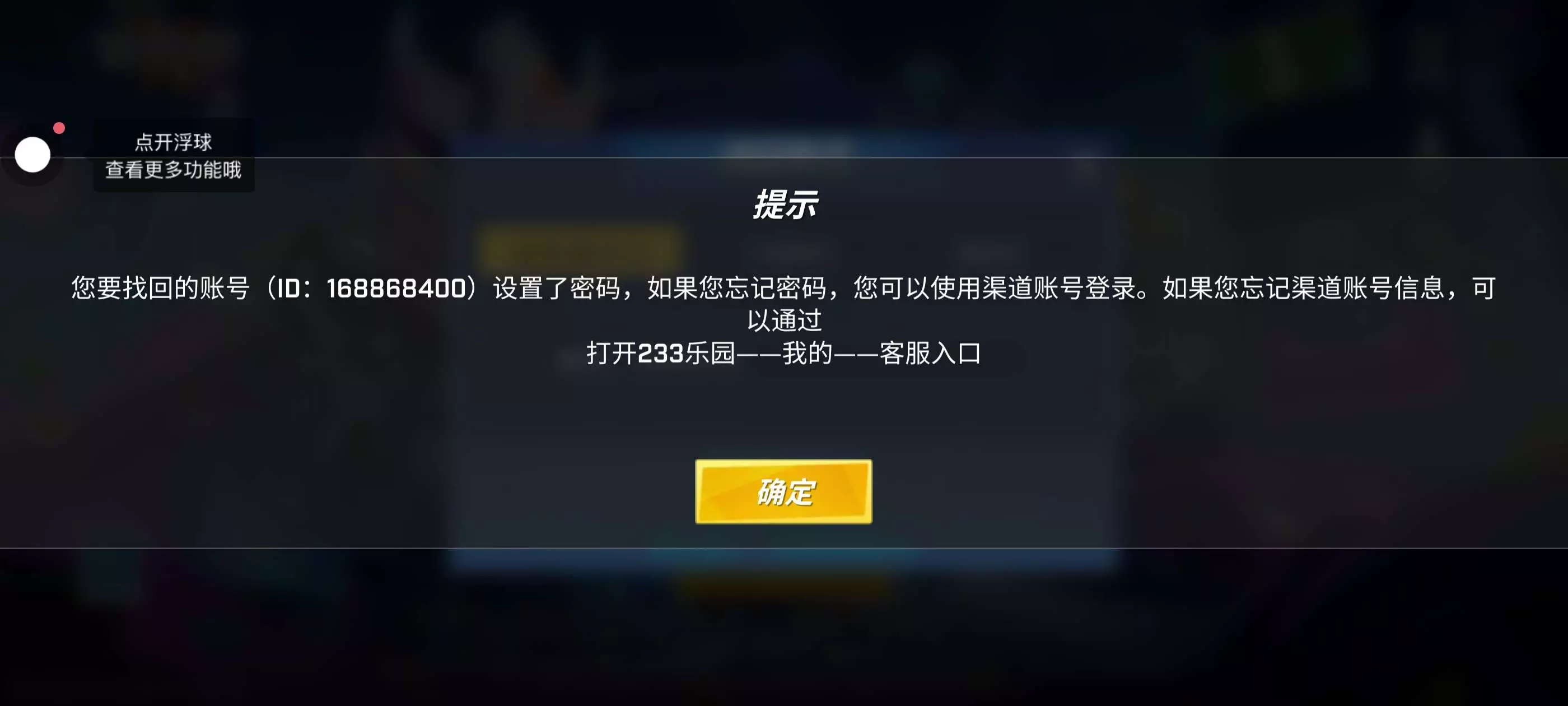 233账号登不上去 但游戏账号登不上去了 怎么找回😭