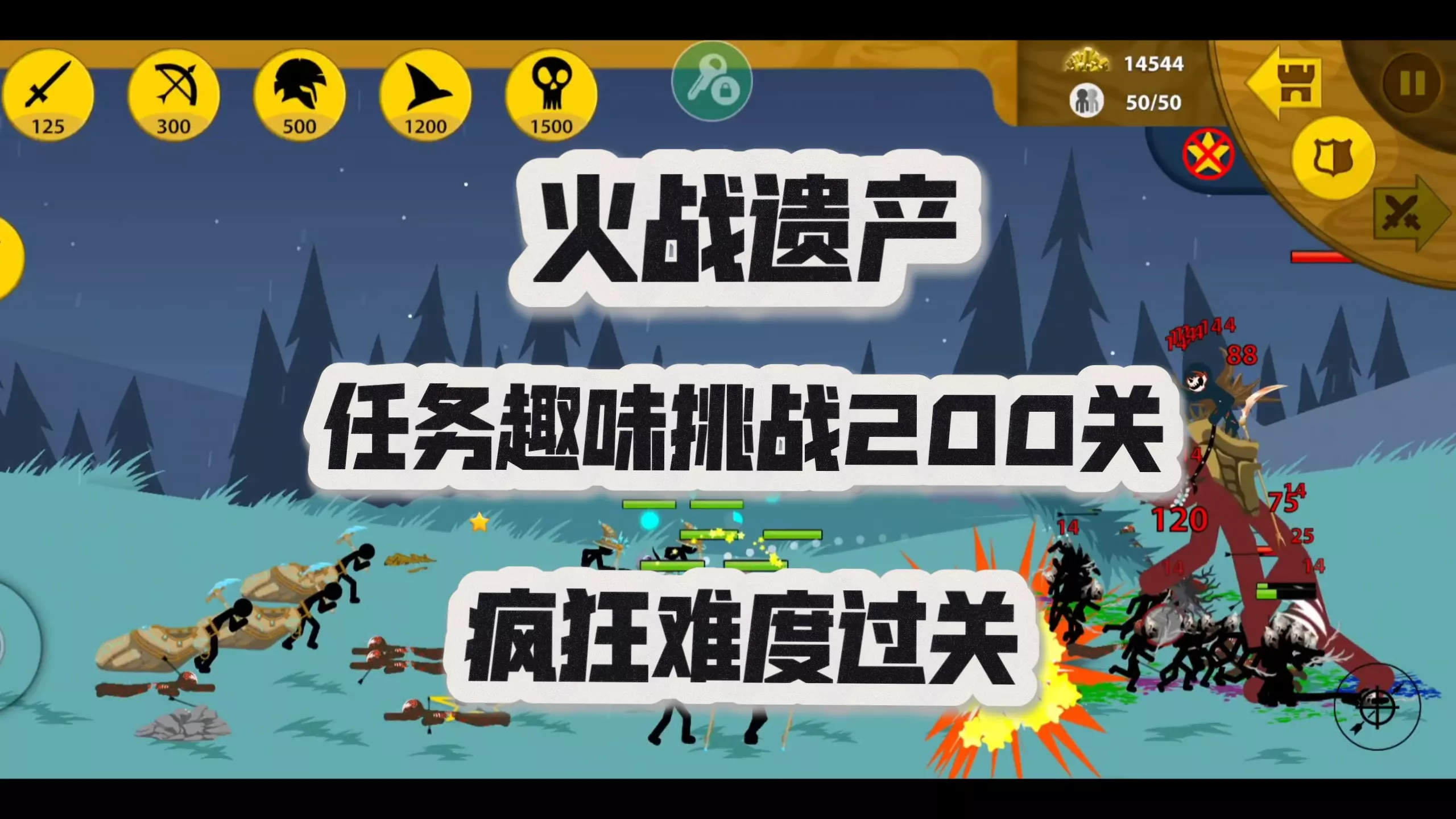这是《火柴人战争遗产》的游戏内容展示,呈现了每周任务450关的闯关过程,该关卡是游戏里的四大真神难关之一,画面包含兵种部署、战斗对抗等游戏环节。