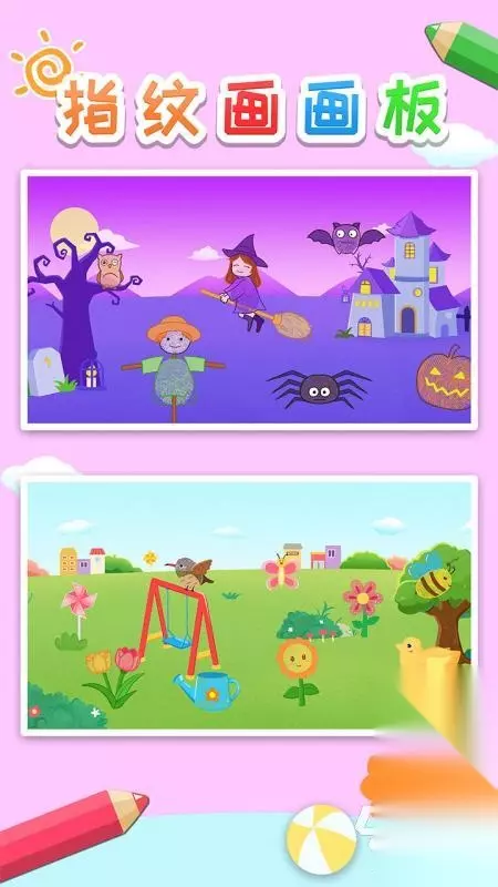 《儿童涂鸦涂色画画板》是专门为了小孩子打造的手机游戏。该游戏致力于通过涂鸦来刺激小孩子的思考能力还有作画灵感。该游戏采用了简单的互动性教程,可以非常轻松的让小孩子上手。游戏目的包括了帮助小孩子人生颜色、形状还有图形,加强了手部和眼睛的协调性,让小孩子的艺术细胞得到充分培养,想象能力得到提升。 高速下载 普通下载 3、《益智指纹画画板》